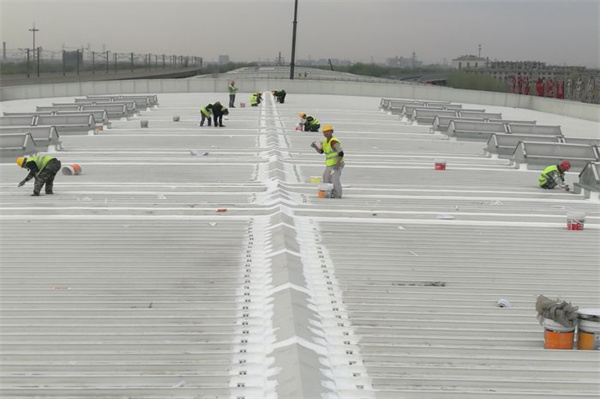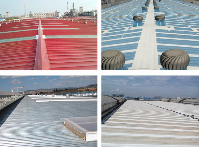 (5)防水层为封闭体系,整体防水效果好,特别适用于异型结构基层的钢结构屋面防水施工;